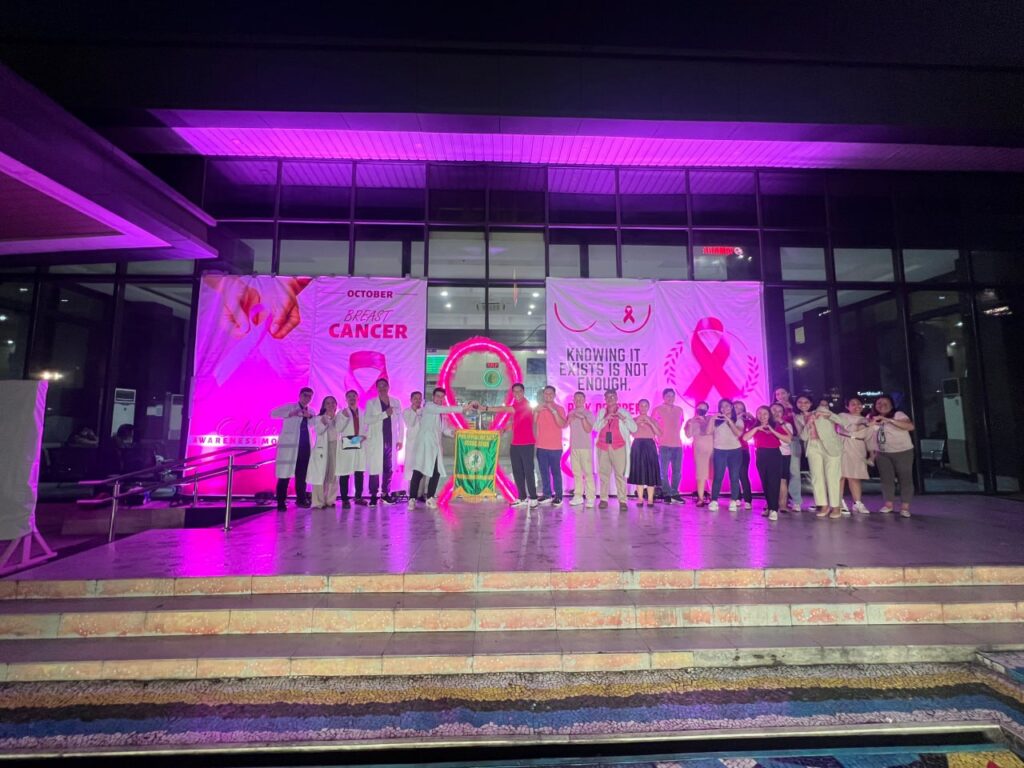 St. Elizabeth Hospital proudly illuminated its facade in pink as